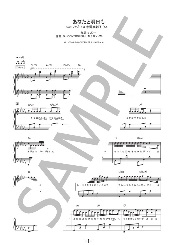 楽譜 楽譜 あなたと明日も Feat ハジ 宇野実彩子 a Spicy Chocolate ピアノ ヴォーカル譜 ハジ ピアノ弾き語り 中級 Piascore 楽譜ストア